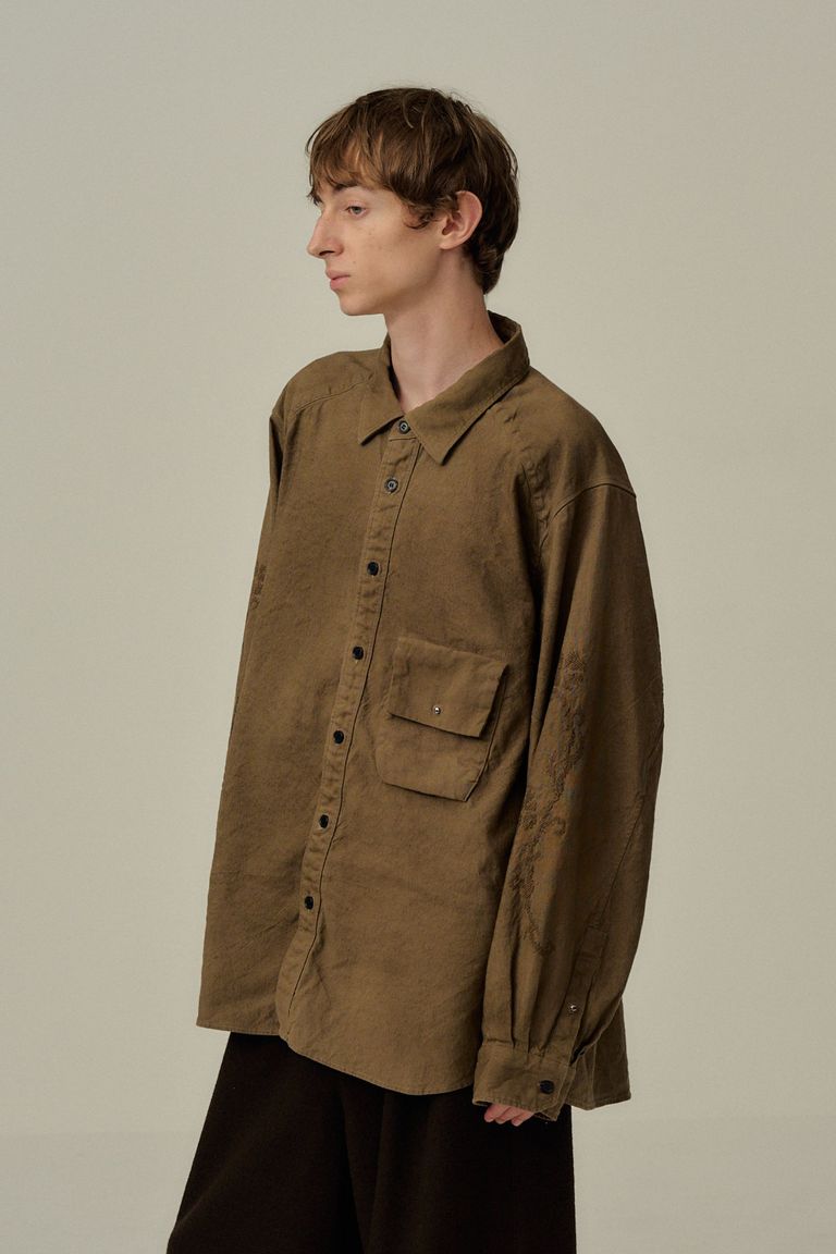[ラスト1点] L/C NEP FLOWER EMBROIDERY OVER SHIRT | BROWN | オーバーシャツ