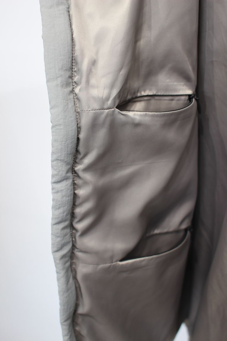 フロントにはジップ付きのポケットがあり、ポケット内の生地はフリースで暖かいです。また、左右にジップ付きの内ポケットが2つずつあります。バッグを持たなくても収納力があります。裾にはシルエットを調節するドローコードも配置されています。