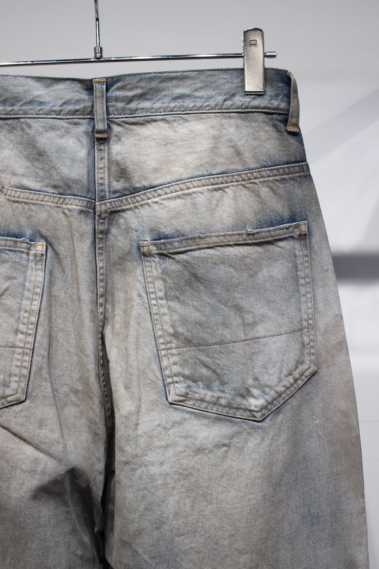 熟練の職人が一本一本に手作業で加工を施し小さなダメージの一つ一つまでバランスを調整。WHITEでは白に白を重ねることで奥行のある表情を生み出し、INDIGOとBLACKでは、色を落として設定したベースカラーに対し、淡色・中色・濃色、それぞれのレイヤーで色気を整えるよう独自調合の色を載せることでブランドの象徴となるムードを生み出しました。