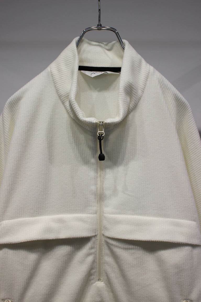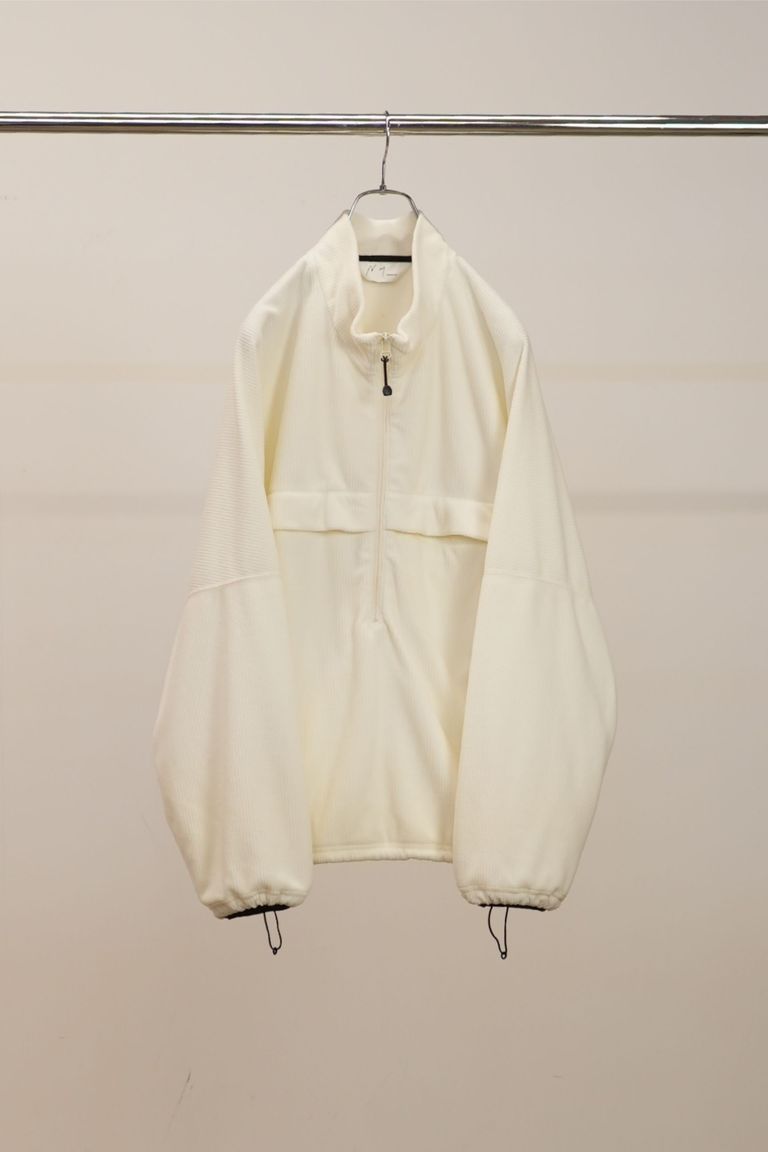 軽量なフリースを素材に深くZIPを走らせた、プルオーバーのシャツブルゾン。