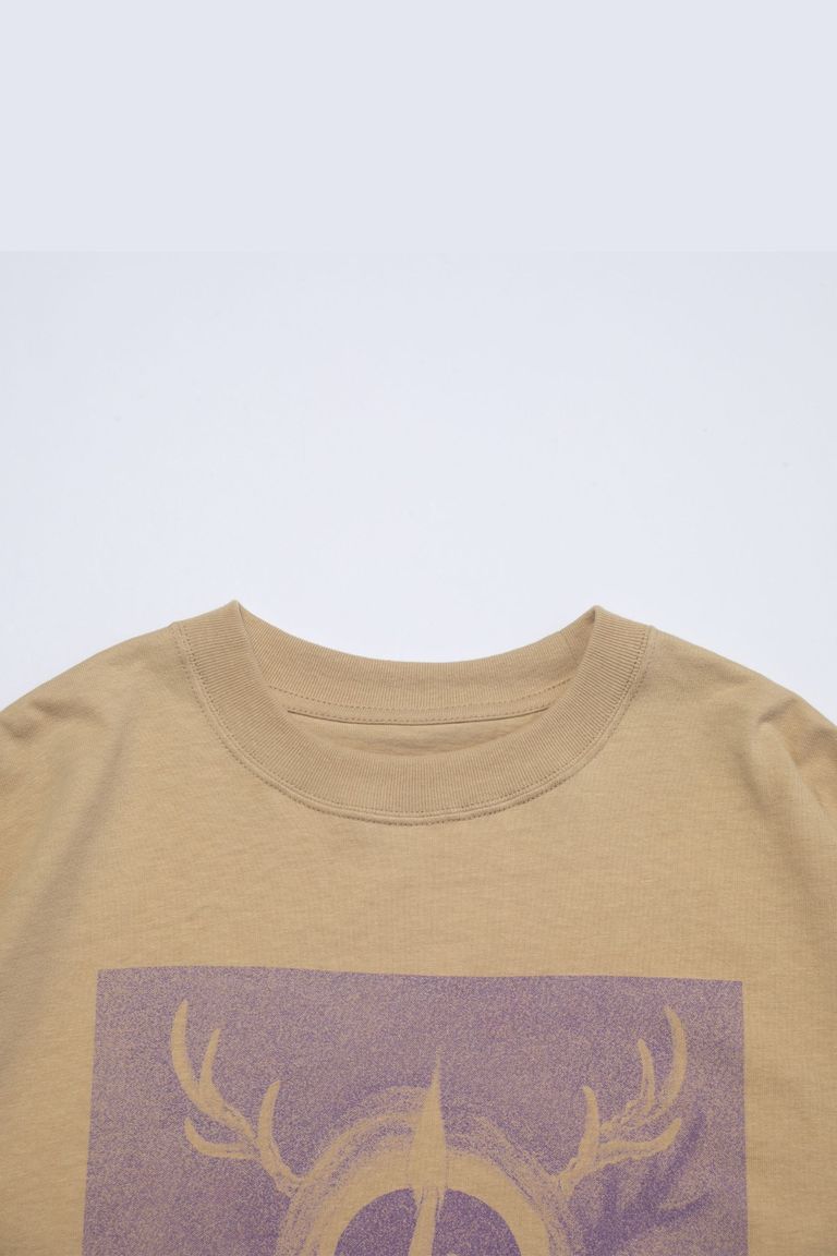 プリントの上からさらに特殊加工を施すことで、まるでヴィンテージのバンドTシャツのような風合いを演出。