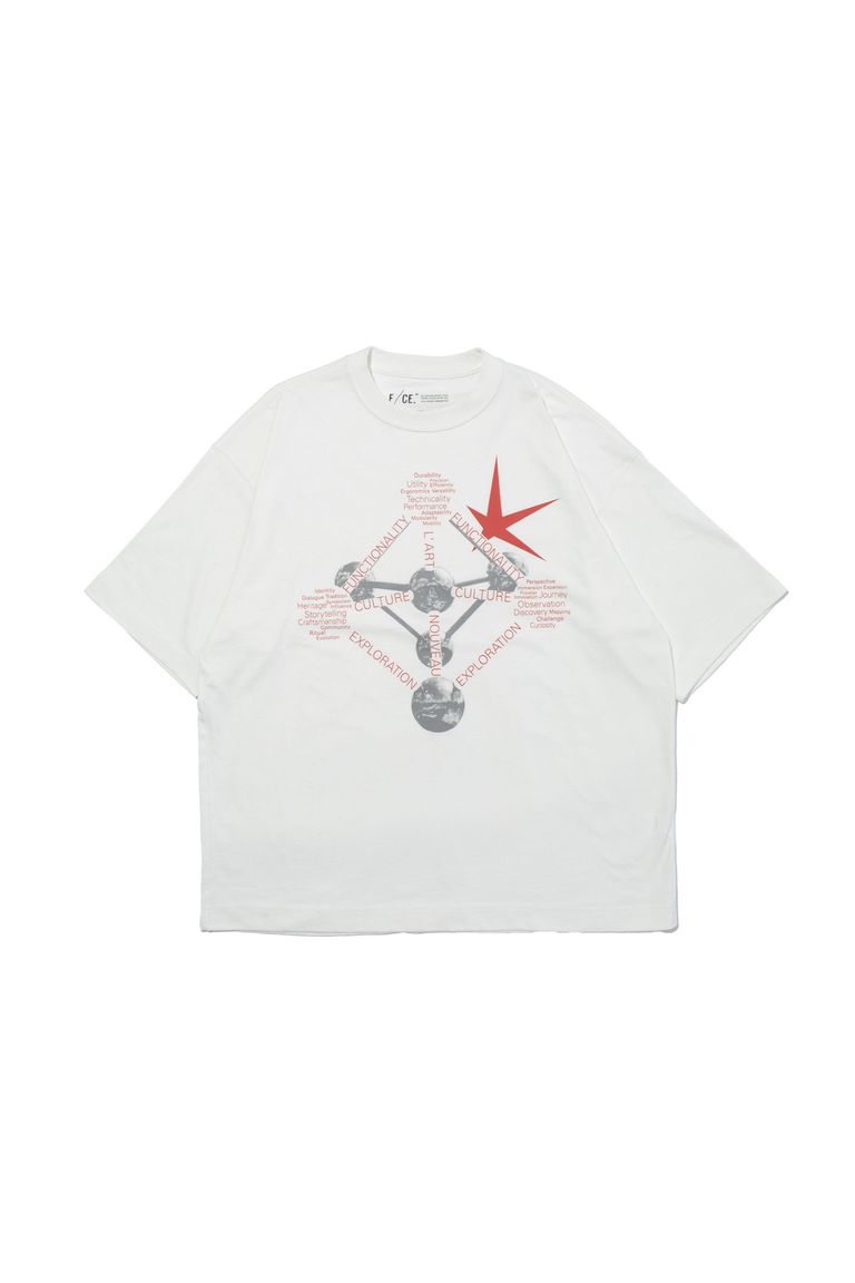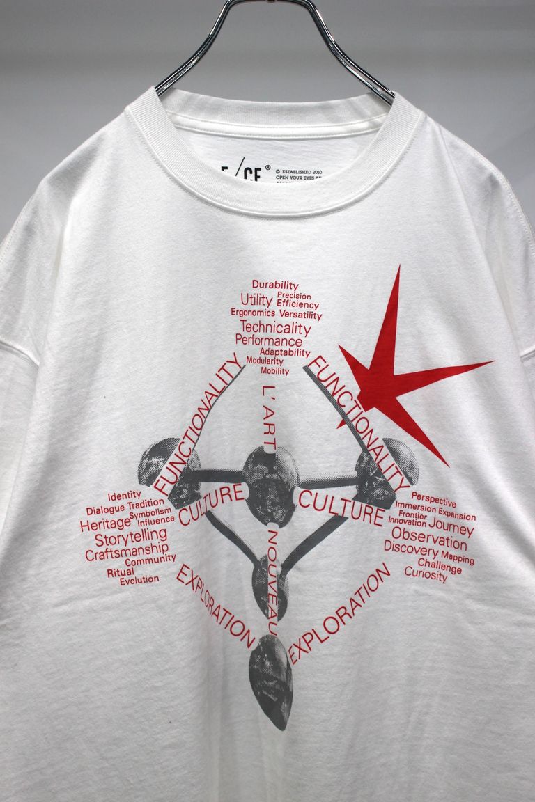 F/CE.のキーワードである “FUNCTIONALITY / CULTURE / EXPLORATION” を、分子構造のように幾何学的に配置し、ブランドの哲学を視覚化した1枚です。