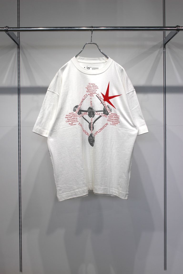 縫製工場で不要になった裁断くずや生地を回収し、再び糸へと生まれ変わらせた100%リサイクルコットンを使用した、F/CE.の理念を体現するグラフィックTシャツ。